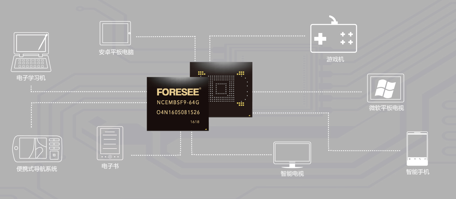 江波龍FORESEE eMMC可保證網(wǎng)頁瀏覽、下載應用程序、高清視頻回放、運行大型游戲時的流暢性,市場上已批量使用超過四年。